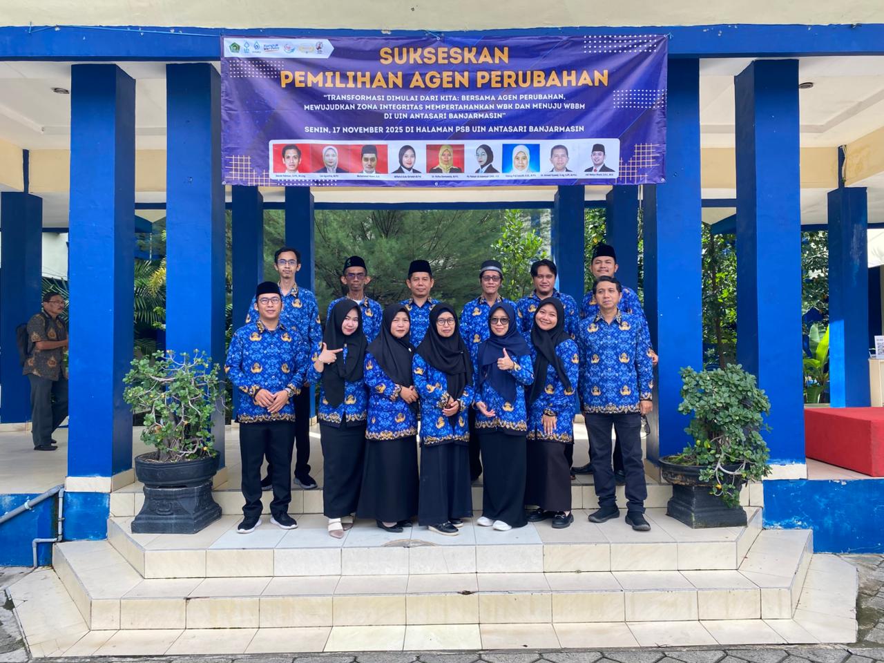 Banjarmasin – UIN Antasari Banjarmasin melaksanakan Pemilihan Agent Perubahan Tahun 2025 secara elektronik pada hari Senin, 17 November 2025 bertempat di Gedung PSB UIN Antasari. Kegiatan dimulai setelah pelaksanaan Upacara Kesadaran Nasional dan berlangsung hingga pukul 10.00 WITA, dengan proses pemilihan yang berjalan tertib, aman, dan lancar.