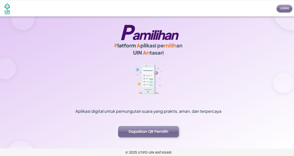 Pelaksanaan pemilihan tahun ini menggunakan aplikasi berbasis web melalui laman https://pamilihan.uin-antasari.ac.id/, yang dikembangkan melalui kerja sama antara Organisasi Kepegawaian dan Unit Teknologi Informasi dan Pangkalan Data (UTIPD) UIN Antasari. Nama “Pamilihan”, yang diambil dari bahasa banjar, sekaligus akronim dari Platform Aplikasi Pemilihan UIN Antasari. Inovasi sistem elektronik ini dihadirkan guna meningkatkan transparansi, efisiensi, dan akurasi proses pemilihan